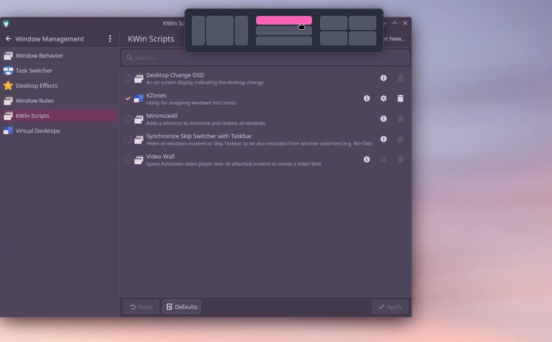 I use two screens at my PC: one 24″ screen to the right, and one 27″ vertically oriented screen to the left. I wanted a config to replicate the Windows Power Tools tiling behavior, specifically one that allows me to split the screen into top, center, and bottom. It’s nothing special, just what I use.